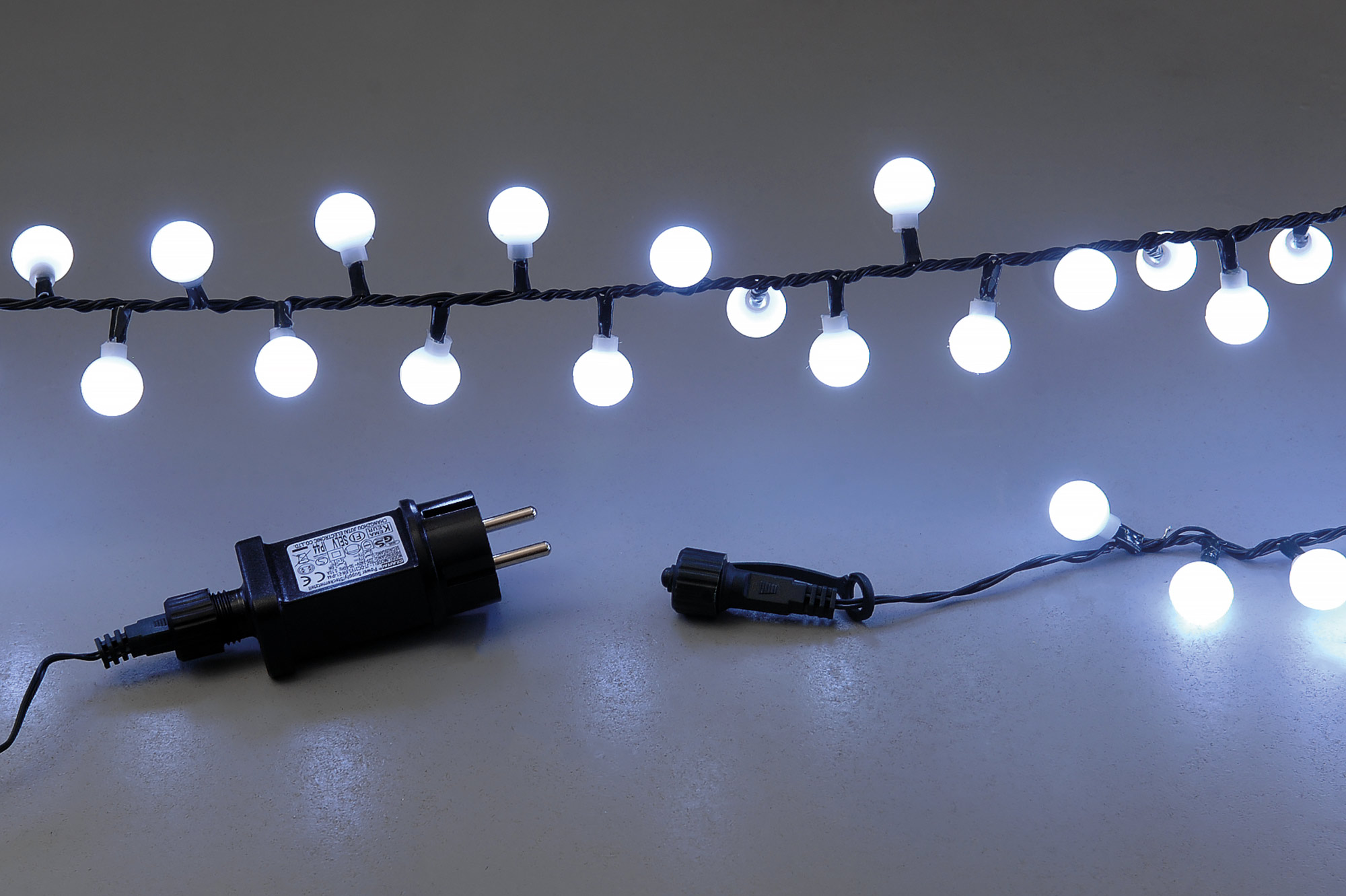 100Led Λαμπάκια Με Μπίλια Με Πρόγραμμα,Επέκταση Και Μετασχηματιστή Ip44 ,Πράσινο Καλώδιο/Λευκό Λαμπάκι 5 Μέτρα