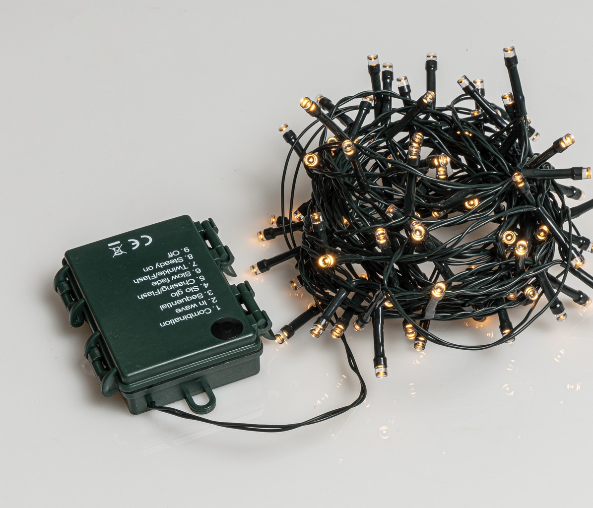 200Led Λαμπάκια Μπαταρίας Με Πρόγραμμα Και Χρονοδιακόπτη Πράσινο Καλώδιο / Θερμό Λαμπάκι , (7,5 cm Απόσταση) 15 Μέτρα (Kelvin: 2.500 – 3.000)