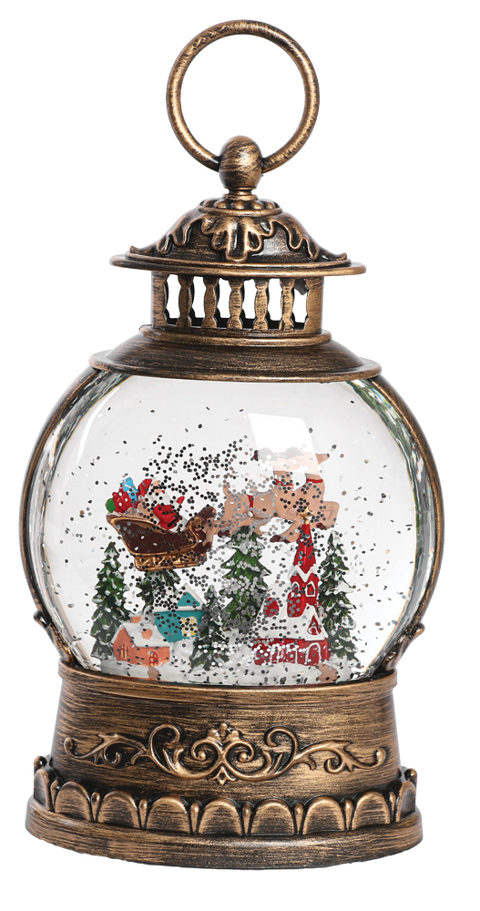 Χριστουγεννιάτικο Διακοσμητικό Φανάρι Χιονόμπαλα Με Φώς Και Μουσική Μπαταρίας Και Καλώδιο Usb 12 x 7,5 x 23cm