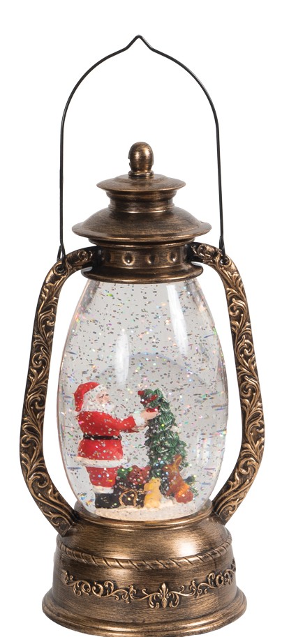 Χριστουγεννιάτικο Διακοσμητικό Φανάρι Χιονόμπαλα Με Φώς Και Μουσική Μπαταρίας Και Καλώδιο Usb 14,5 x 11,8 x 27cm