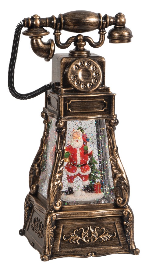 Χριστουγεννιάτικο Διακοσμητικό Τηλέφωνο Χιονόμπαλα Με Φώς Και Μουσική Μπαταρίας Και Καλώδιο Usb 13,3 x 11,3 x 26,5cm