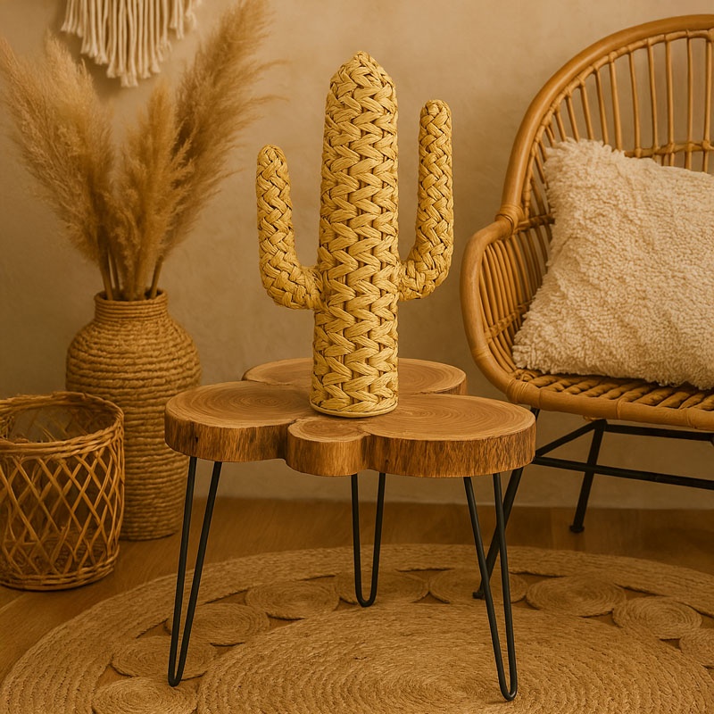 - Κατασκευή από ψάθα εξαιρετικής ποιότητας. Έχει έναν φυσικό, αυθεντικό χαρακτήρα που προσδίδει ζεστασιά και φυσικότητα στον χώρο.