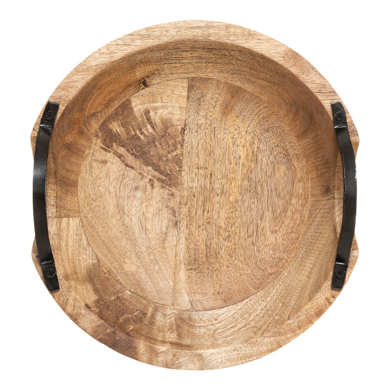 - Διαθέτει κομψά, μαύρα μεταλλικά χερούλια όχι μόνο προσθέτουν μια σύγχρονη αντίθεση στην οργανική υφή του ξύλου, αλλά καθιστούν επίσης το μπολ εύκολο στη μεταφορά, αν και είναι κυρίως σχεδιασμένο ως σταθερό διακοσμητικό στοιχείο.