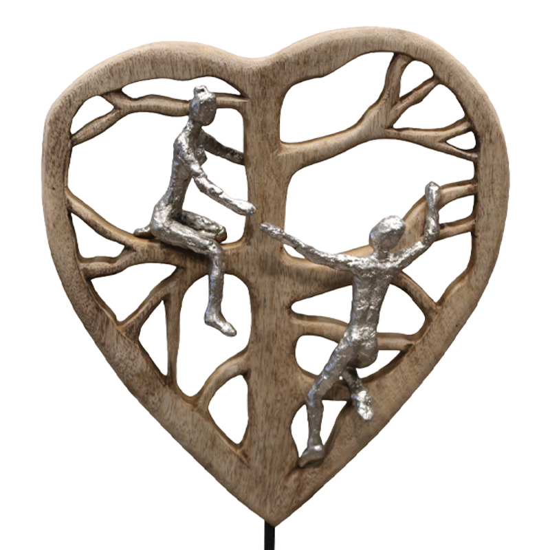 Επιτραπέζιο διακοσμητικό καρδιά Smarle Inart φυσικό μάνγκο ξύλο-αλουμίνιο 32x10x47.5εκ