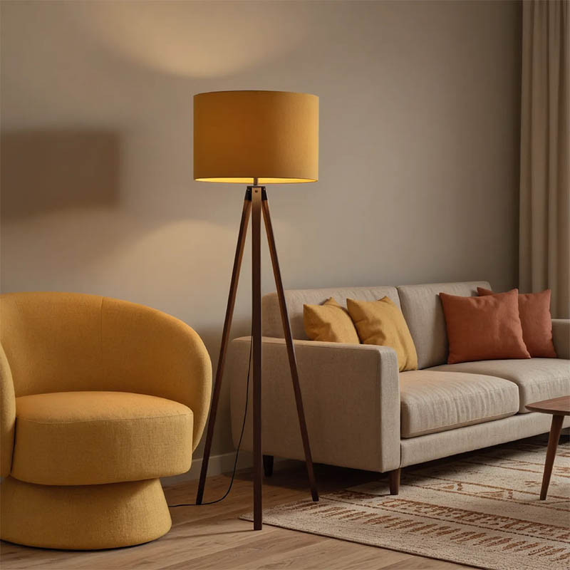 Φωτιστικό δαπέδου PWL-1059 Ε27 καρυδί-κίτρινο Φ38×140εκ