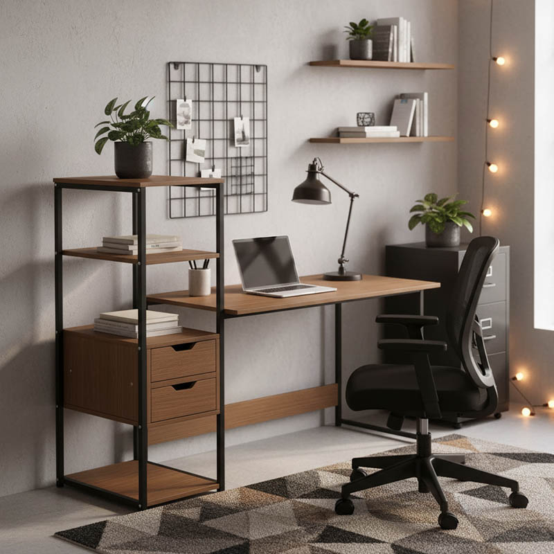 Γραφείο Zayn ΙΙ pakoworld με ραφιέρα-MDF καρυδί-μαύρο 107x40x110εκ