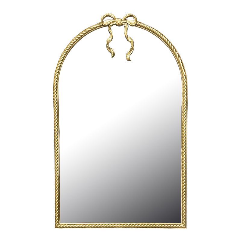 Φέρτε έναν αέρα ρομαντικής κομψότητας και αρχοντιάς στον χώρο σας με αυτόν τον υπέροχο καθρέφτη τοίχου σε σχήμα αψίδας. Το περίτεχνο χρυσό πλαίσιο και ο διακριτικός φιόγκος στην κορυφή, προσδίδουν μια διαχρονική φινέτσα και έναν αριστοκρατικό τόνο.