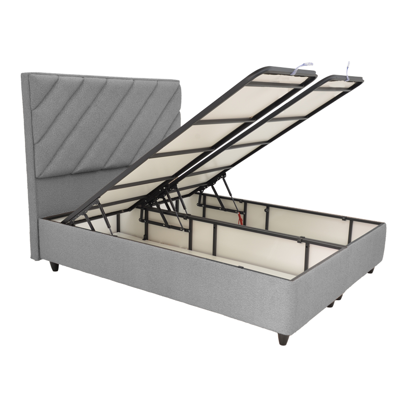 Κρεβάτι διπλό Tito με αποθηκευτικό χώρο μπουκλέ ύφασμα σε ανοιχτή γκρι απόχρωση 160×200εκ