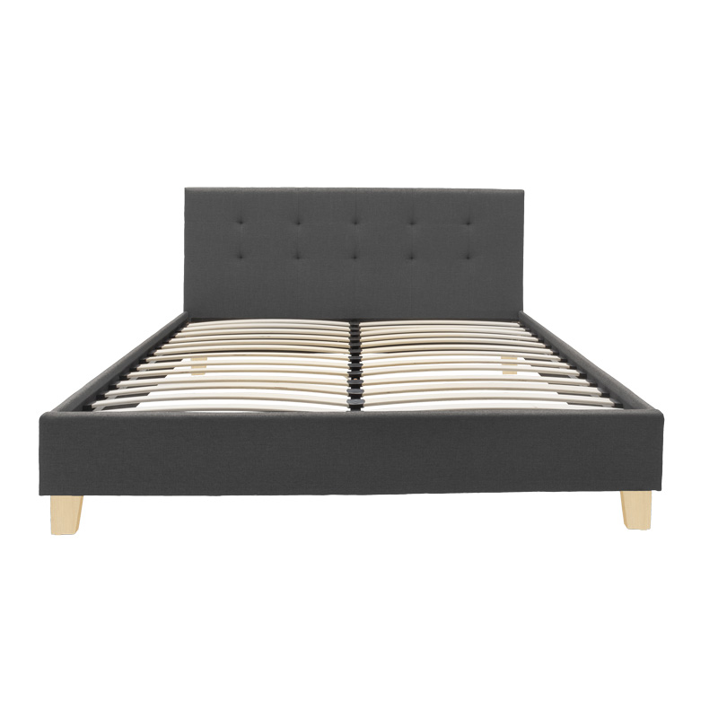 Κρεβάτι Mago ύφασμα σε ανθρακί απόχρωση με φυσικό ξύλινο πόδι 140×200εκ