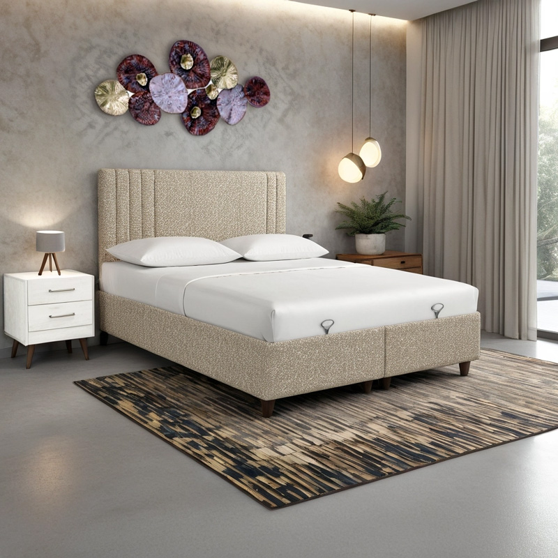 Κρεβάτι με αποθηκευτικό χώρο Lineo μπουκλέ σε μπεζ απόχρωση 160×200εκ