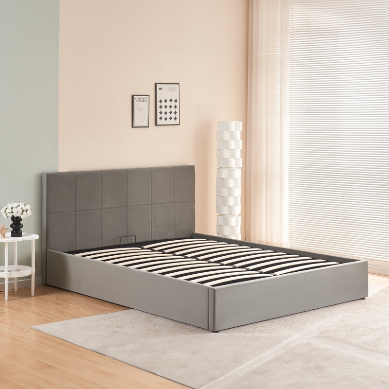 Κρεβάτι με αποθηκευτικό χώρο Zamblene γκρι βελούδο 160×200εκ