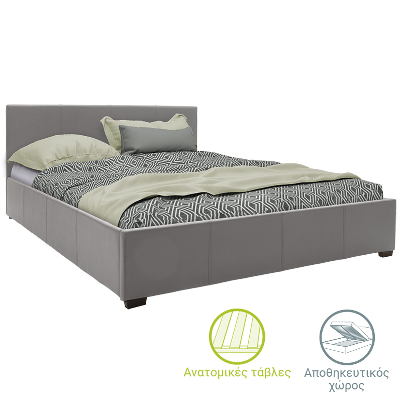 Κρεβάτι Norse pakoworld διπλό pu γκρι ματ με αποθηκευτικό χώρο 160×200εκ