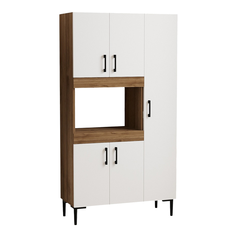 Ντουλάπα κουζίνας Defne pakoworld χρώμα λευκό-καρυδί 89×37.5×160εκ
