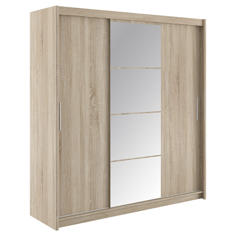 Ντουλάπα ρούχων Elodie τρίφυλλη καθρέπτης συρόμενη sonoma 200x61x216εκ