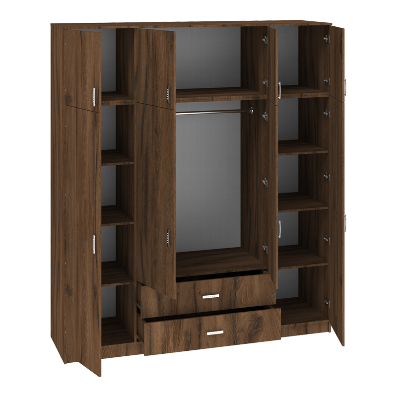 Ντουλάπα τετράφυλλη με συρτάρια Royal καρυδι-oak 200x58x230εκ