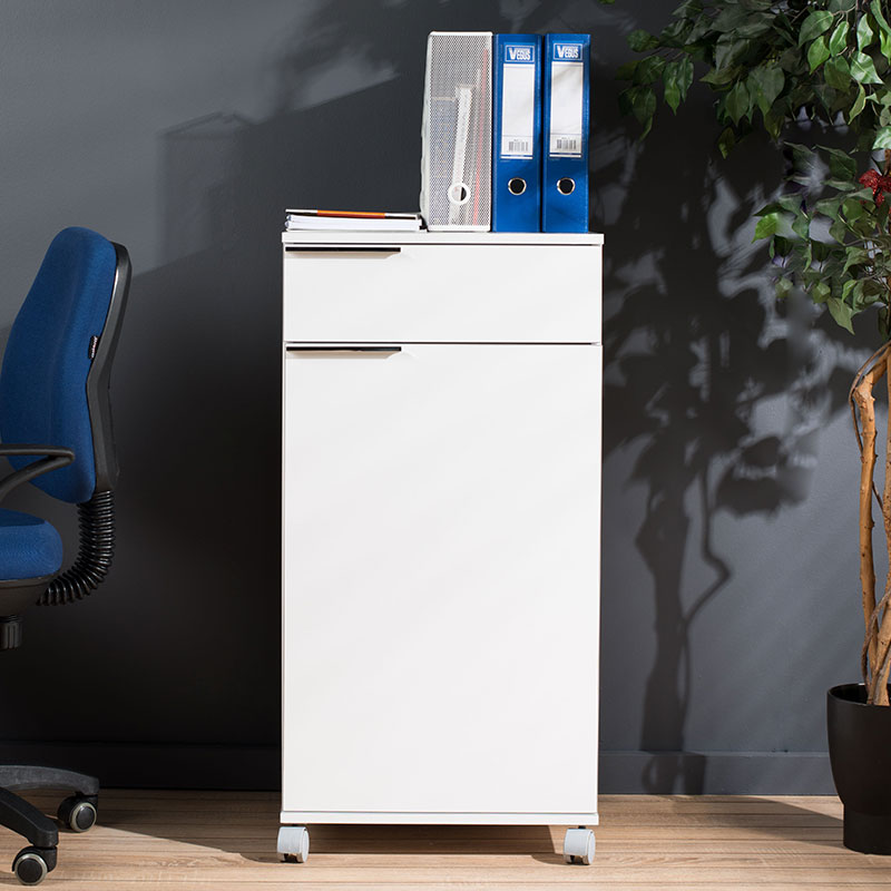Ντουλάπι Chad τροχήλατο με συρτάρι λευκό gloss 50x40x100εκ