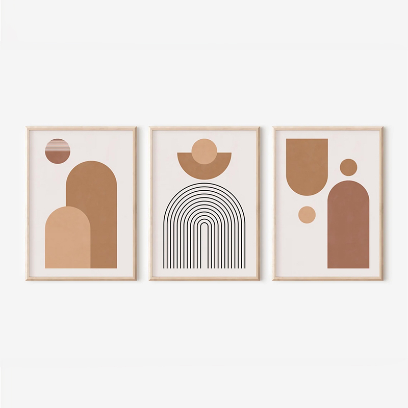 Αναβαθμίστε τον τοίχο σας με αυτό το εντυπωσιακό τριπτυχικό σετ πινάκων Jackalon. Οι αφηρημένες, γεωμετρικές συνθέσεις του Jackalon, με κυρίαρχους τους ζεστούς γήινους τόνους, ακολουθούν την Boho-Minimal αισθητική και προσδίδουν στον χώρο σας ένα εκλεπτυσμένο και ήρεμο στυλ.