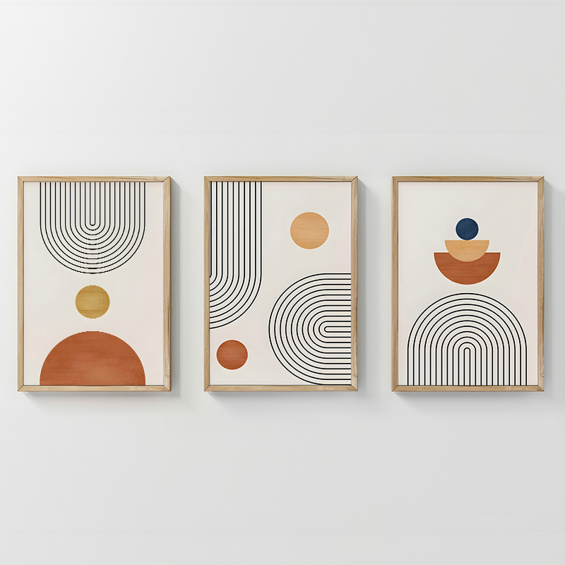 Εισάγετε στον χώρο σας ένα έργο που συνδυάζει την τάξη των γεωμετρικών γραμμών με τη ζεστασιά των γήινων χρωμάτων, δημιουργώντας ένα δυναμικό, μοντέρνο αποτέλεσμα. Το τρίπτυχο Lenda είναι μία αισθητική δήλωση που αποτελείται από τρία ξεχωριστά, αλληλεπιδρώντα τεμάχια. Κάθε πίνακας παρουσιάζει αφηρημένα γεωμετρικά στοιχεία που γεμίζουν με λεπτές, καμπυλωτές γραμμές. Αυτή η τριπλή διάταξη προσδίδει βάθος, δυναμισμό και υψηλή αισθητική στον χώρο, ιδανική για σύγχρονα σαλόνια και γραφεία.