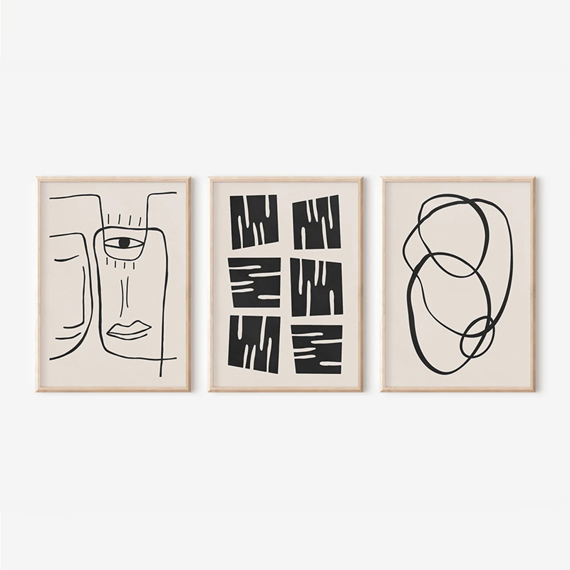 Αναβαθμίστε τον χώρο σας με την εκλεκτική δύναμη της αφηρημένης τέχνης: το Τρίπτυχο Lumora είναι το ιδανικό στοιχείο για να προσδώσετε έναν minimalist, πολυδιάστατο χαρακτήρα στους τοίχους σας. Αυτή η σύνθεση τριών τεμαχίων, ενισχυμένη από ψηφιακές εκτυπώσεις υψηλής ανάλυσης, συνδυάζει τρεις διαφορετικές τάσεις: ελεύθερες γραμμές (line art), γεωμετρικά μπλοκ και οργανικές καμπύλες σε μία έντονη αντίθεση μαύρου και απαλού μπεζ. Μέσα από τη δυναμική και αρμονική τους διάταξη, δημιουργούν έναν σύγχρονο, εκλεπτυσμένο οπτικό ρυθμό και μία ισχυρή αισθητική δήλωση.