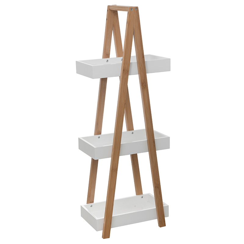 Ραφιέρα επιδαπέδια 3όροφη Nancy pakoworld ξύλινη χρώμα φυσικό-λευκό 30x18x82εκ