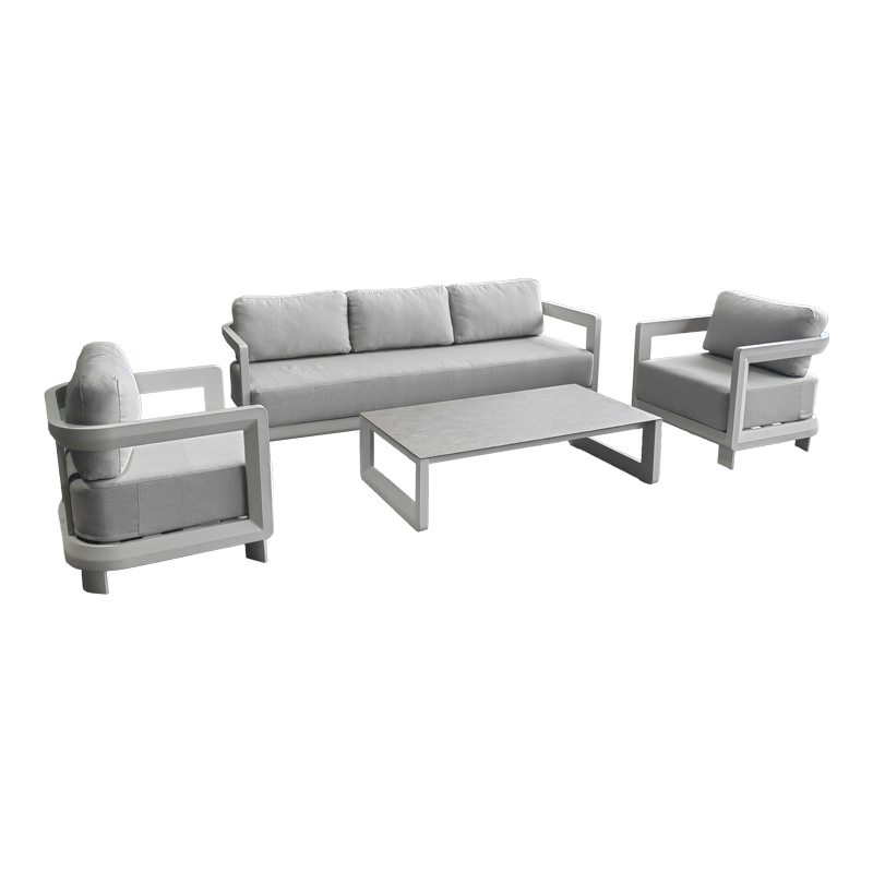 Σαλόνι εξωτερικού χώρου Jenora μπεζ αλουμίνιο με ύφασμα σε απόχρωση ανοιχτό γκρι