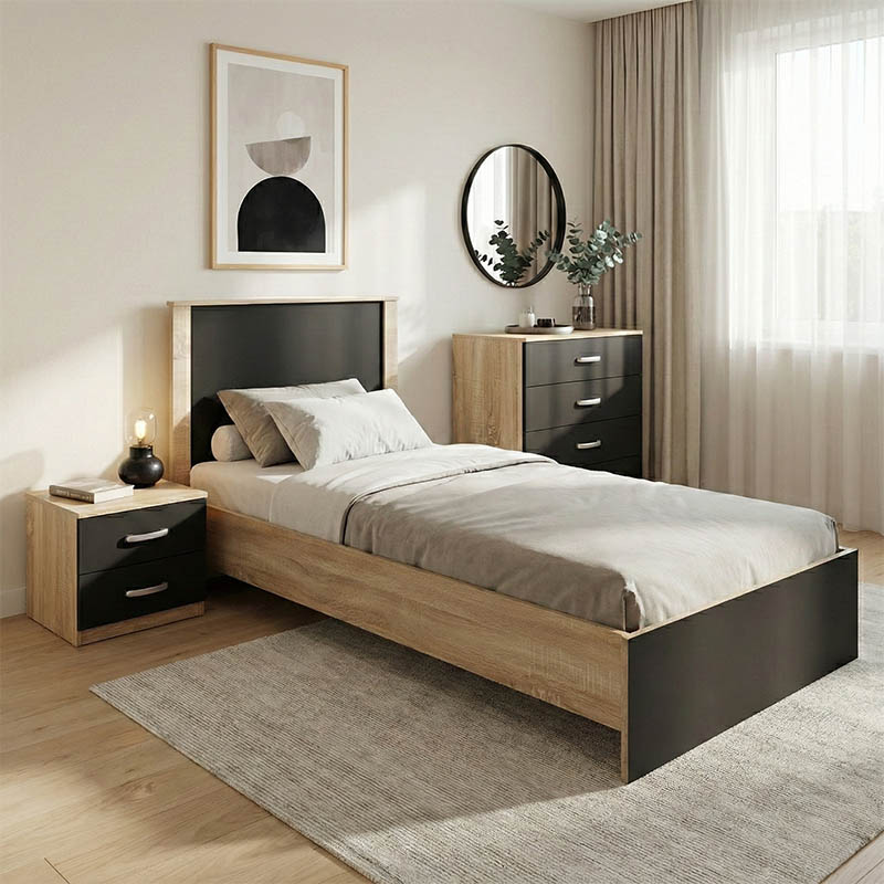 Σετ Κρεβατοκάμαρας Athos Sonoma Ανθρακί με Κρεβάτι 90×190εκ Σετ 3τεμ