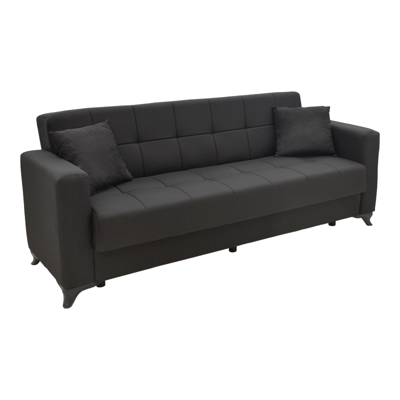 1. Καναπές-κρεβάτι με αποθηκευτικό χώρο τριθέσιος Modesto pakoworld μαύρο ύφασμα 215x85x80εκ