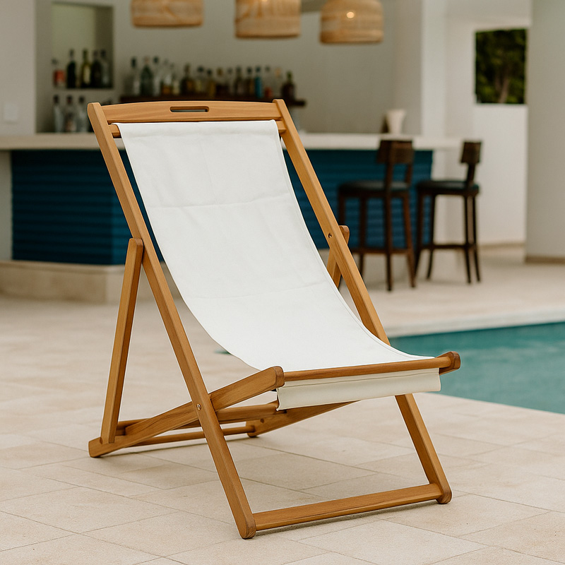Σεζλόνγκ Franclow ξύλο ακακίας φυσικό-πανί pvc λευκό