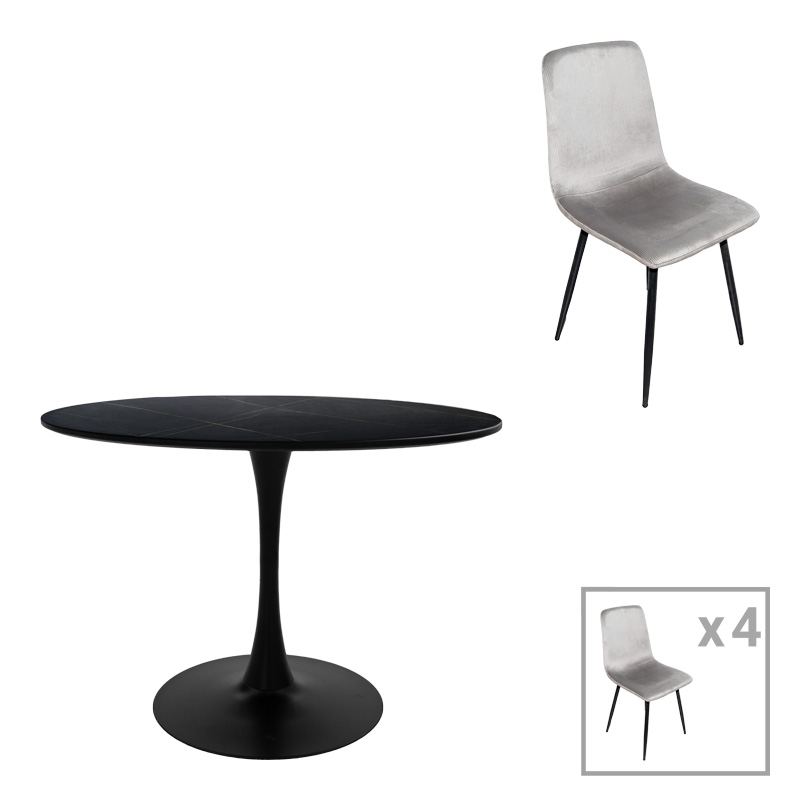 Τραπεζαρία Balou-Grato σετ 5τεμ μαύρο-γκρι Φ100×73εκ