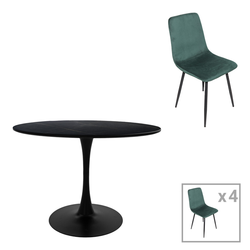 Τραπεζαρία Balou-Grato σετ 5τεμ μαύρο-κυπαρισσί Φ120×73εκ