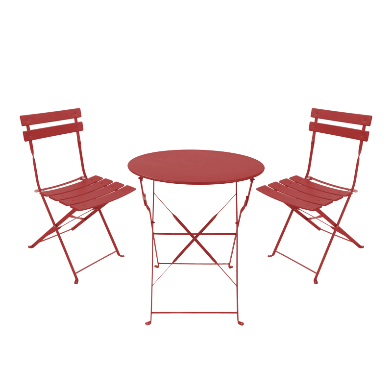 Τραπεζαρία Bistro σετ 3τεμ μεταλλική αναδιπλούμενη σε terracotta απόχρωση Φ60×71εκ