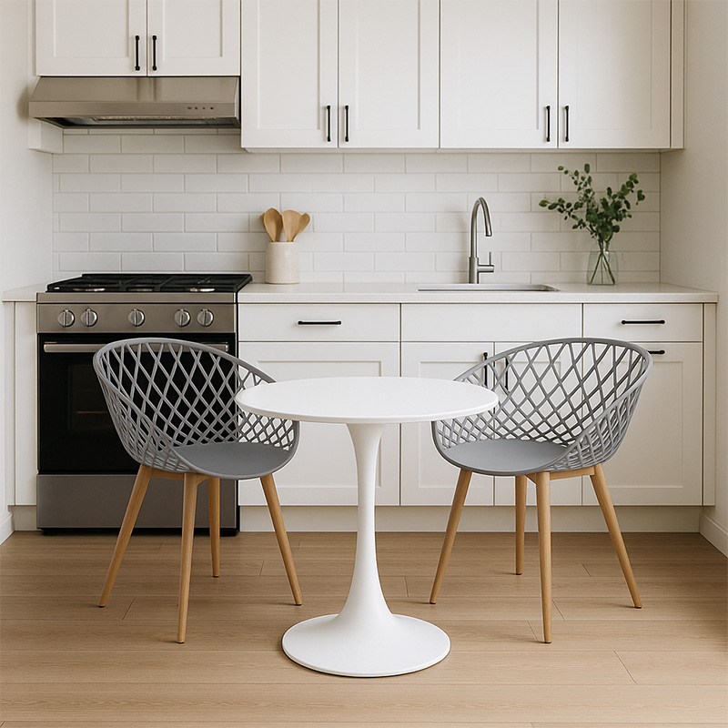 Ένα σετ τραπεζαρίας minimal αισθητικής που συνδυάζει αρμονικά το πρωτοποριακό design με τα πιο ανθεκτικά υλικά, κατάλληλο για να αναδείξει το ακόμη και το πιο μικρο χώρο.