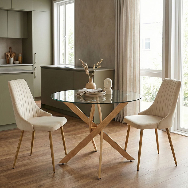 Τραπεζαρία με Καρέκλες Azori Μπεζ και Τραπέζι Antoro Γυαλί Φ80×75εκ Σετ 3τεμ