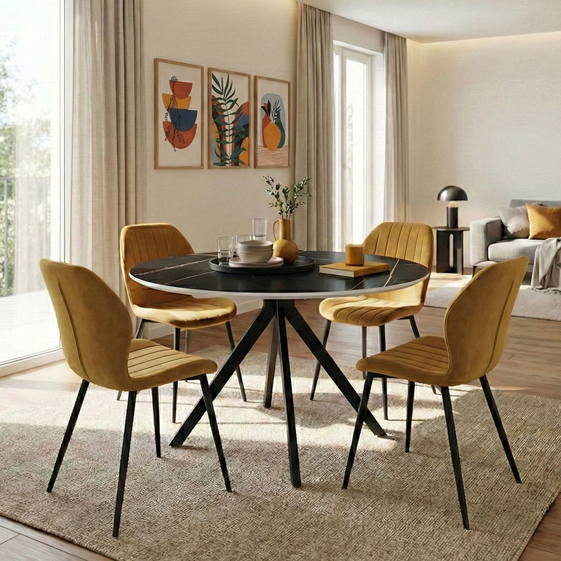 Τραπεζαρία με Καρέκλες Jelour Κίτρινο και Τραπέζι Orbital Μαύρο Φ120×76 Σετ 5τεμ