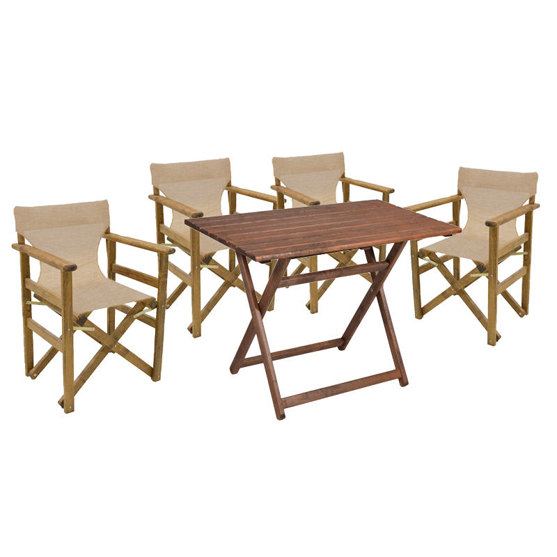 * Τέσσερα (4) πολυθρόνες κήπου Retto από μασίφ ξύλο φουρνιστής οξιάς σε χρώμα καρυδί διάστασης: 61x51x86 εκ.