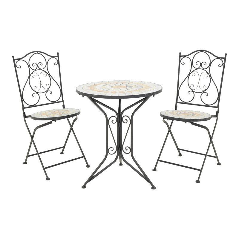 Τραπεζαρία Sellis σετ 3τεμ μωσαικό-μέταλλο μαύρο