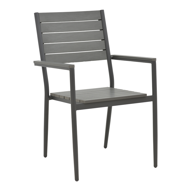 - Plywood: Το plywood είναι ένα σύνθετο υλικό που μοιάζει με ξύλο, κατασκευασμένο από ανακυκλωμένα πλαστικά. Χρησιμοποιείται συνήθως για την κατασκευή εξωτερικών επίπλων, όπως τραπέζια, καρέκλες, ξαπλώστρες και παγκάκια. Είναι εξαιρετικά ανθεκτικό στις καιρικές συνθήκες.