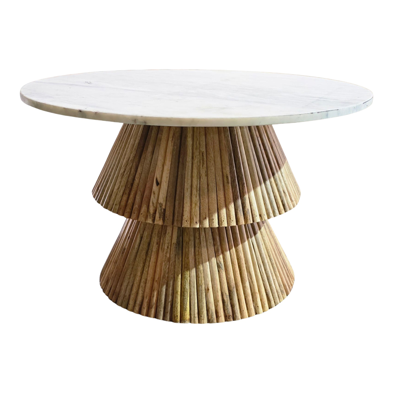 Τραπέζι σαλονιού Havai μασίφ ξύλο mango σε φυσική απόχρωση κ λευκή επιφάνεια μαρμάρου Φ80×45εκ