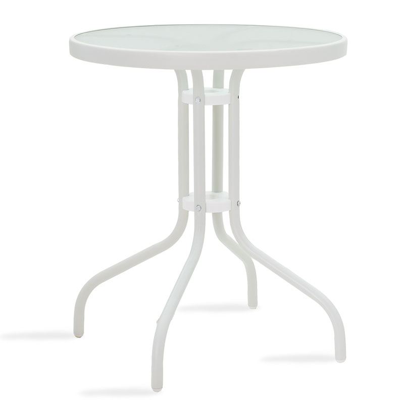 Τραπέζι Watson μέταλλο λευκό-γυαλί Φ60×70εκ