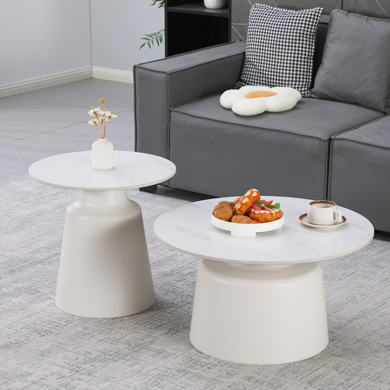 Τραπέζια σαλονιού Dualis σετ 2 τεμ μέταλλο-sintered stone σε λευκό μαμρμάρου
