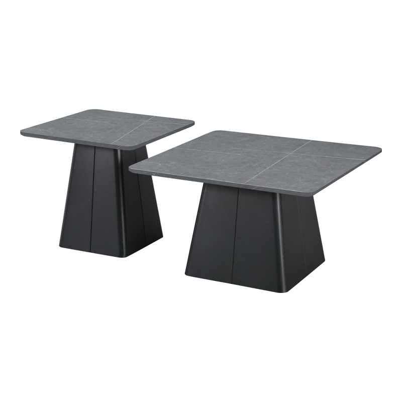 Τραπέζια σαλονιού Square σετ 2 τεμ βάση μέταλλο σε μαύρη-sintered stone σε γκρι μαρμάρου