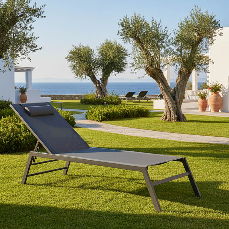 Ξαπλώστρα Kiara αλουμίνιο-textilene ανθρακί στοιβαζόμενη